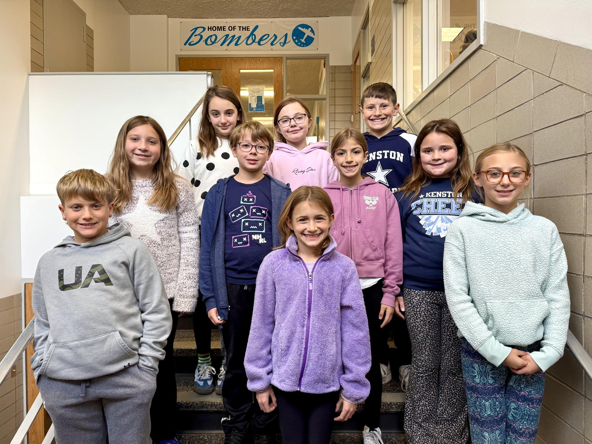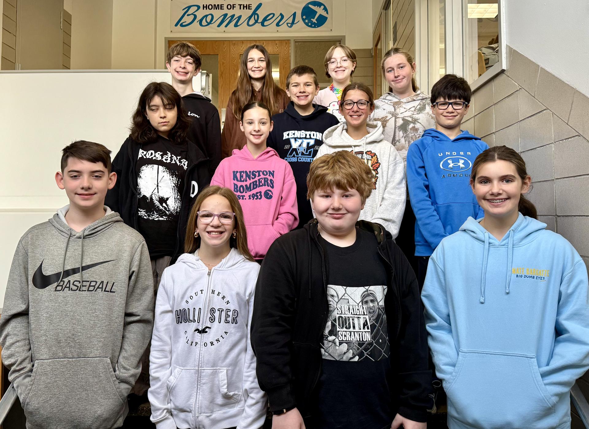 Congratulations to the Kenston Middle School Students of the Month for October. Fourth graders selected for Respect awards were (back row, l-r) Emerson Wintz, Kylee Todia, and Karson Krahe; (middle row, l-r) Harper Dwyer, Tanner Wilks, Esther Chelbezan, and Addelyn Richardson; (front row, l-r) Hudson Stotter, Mia Agresta, and Audrey Swift. (not pictured: Raffi Lafferty. |