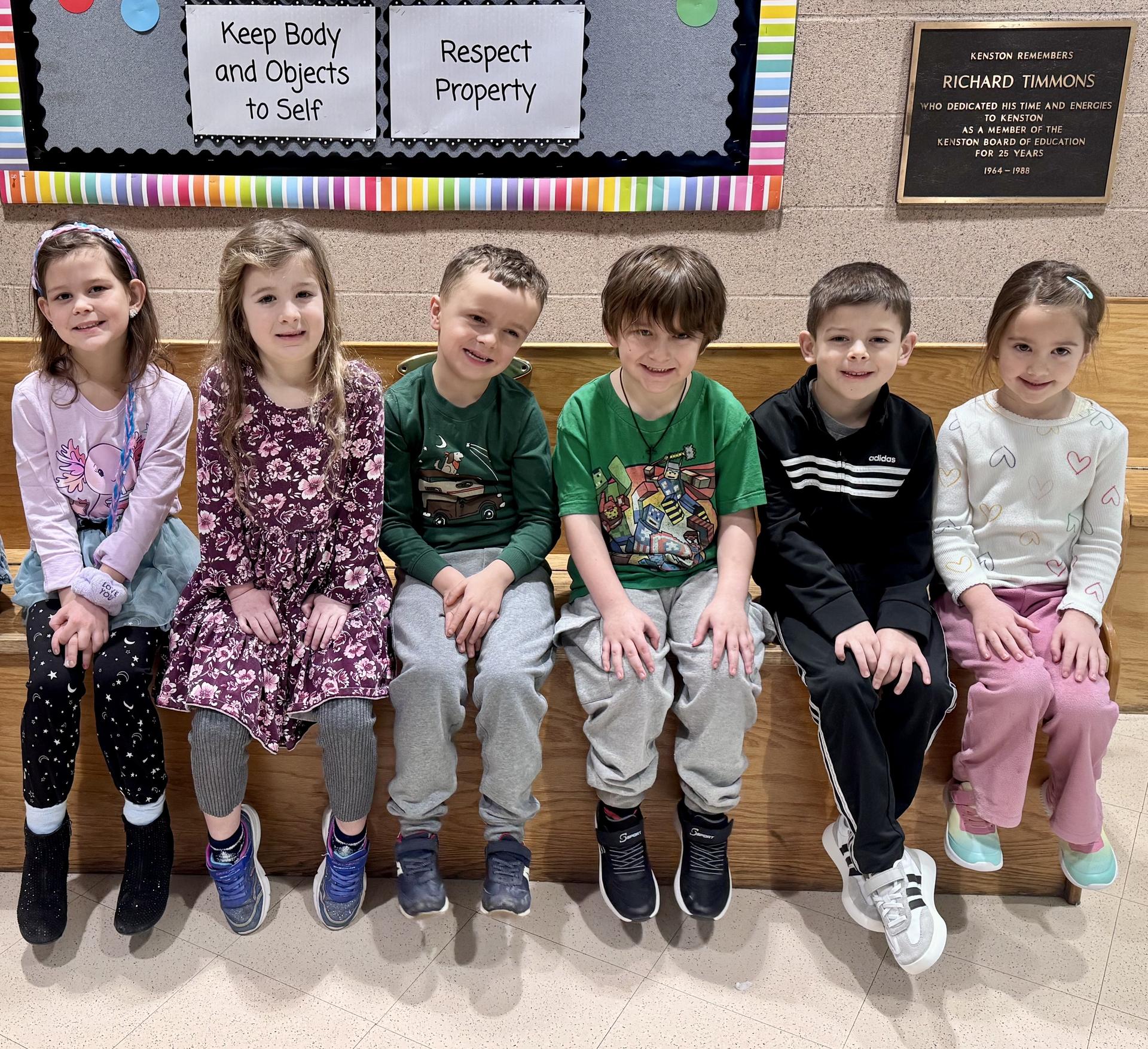 Kindergartners selected Timmons Elementary Lunch Bunch for their Self-Control in January were (l-r) Kennedy Bodnovich (not pictured), Jovie Schulz, Olivia Schuster, Owen Timmons, Rhys Uguccini, Luke Davidson, and Isla Pacifici. |