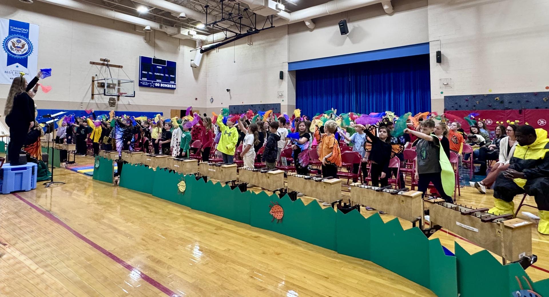 Today, the Timmons Elementary School second-grade students gave a buzz-worthy performance through their music program, Bugz. Students spent countless hours practicing songs, learning speaking parts, and mastering instruments to put on an impressive show for their friends and family.