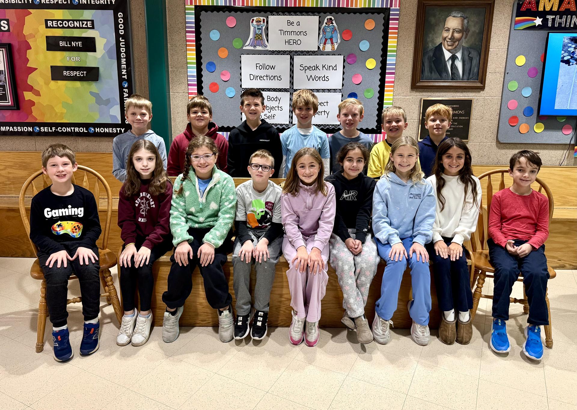 Congratulations to the Timmons Elementary School Second Graders who were selected for their Respect in October. They are (back row, l-r) Lara Luebke, Bennett Collins, Carly Rayle, and Malachi Simmons; (front row, l-r) Isaac Spiert, Jason Clark, Mykka Miller, Ahri Emery, and Joey Zuccaro. |